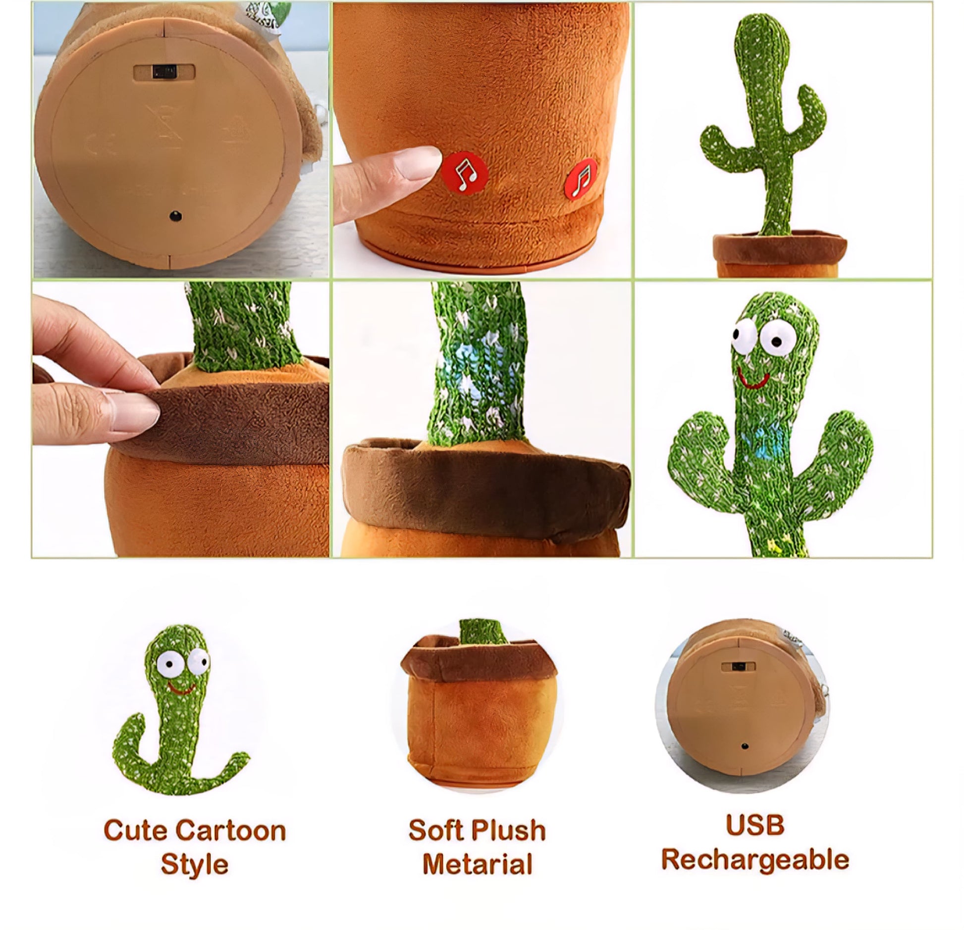 - 100% SAFE FOR CHILDREN STRONG MATERIAL Toy Imagine dancing cactus toy is made of non-toxic and harmless soft plush fabric. This cactus toy meets international children's toy safety requirements. The electronic cactus toy has a plastic bottom that allows it to stand firmly on the table; to clean, simply wash with a moist towel.