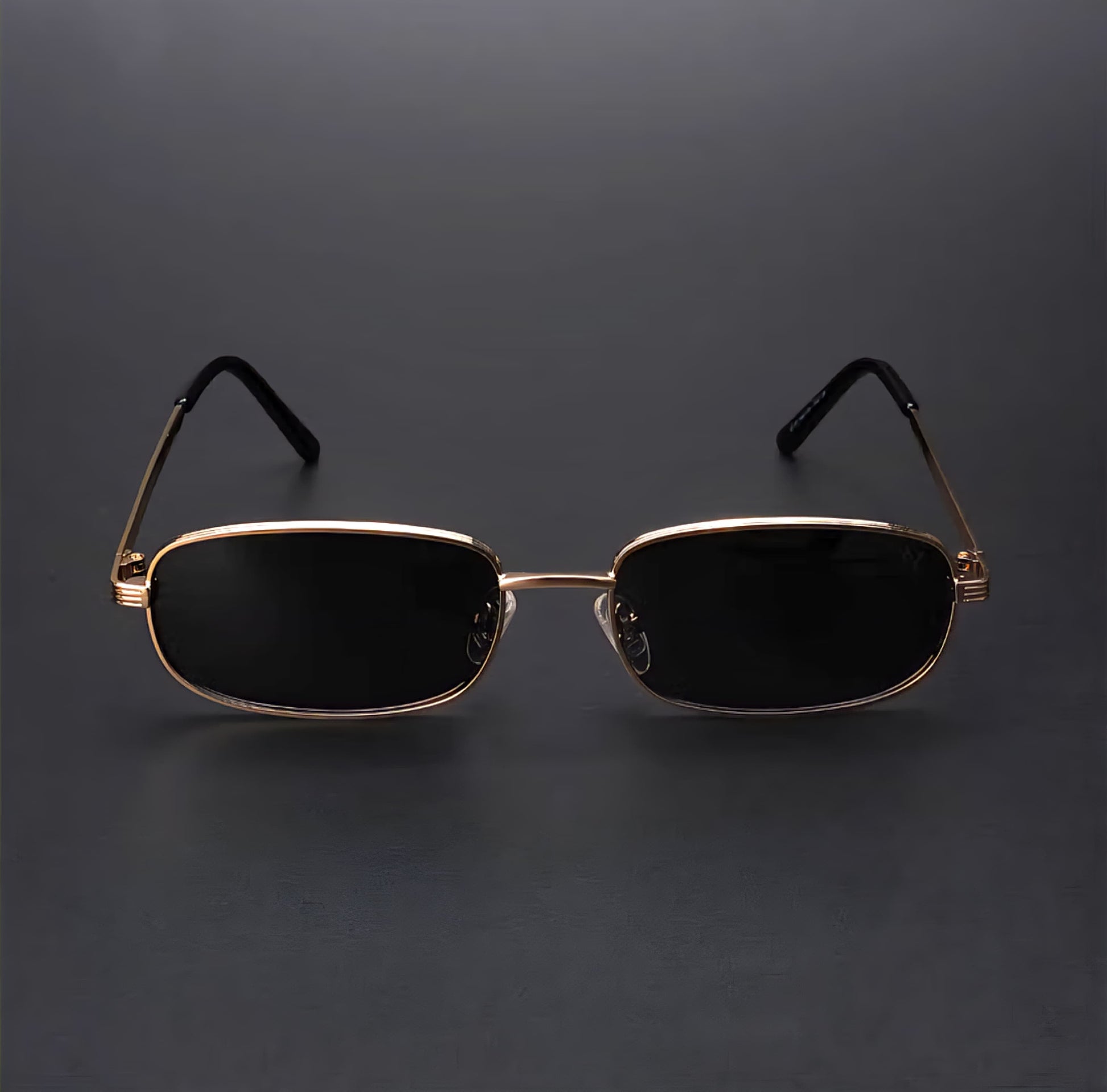 Sunglasses |Unisex Black Lens Gold Frame Rectangle Sunglasses - ZESG92